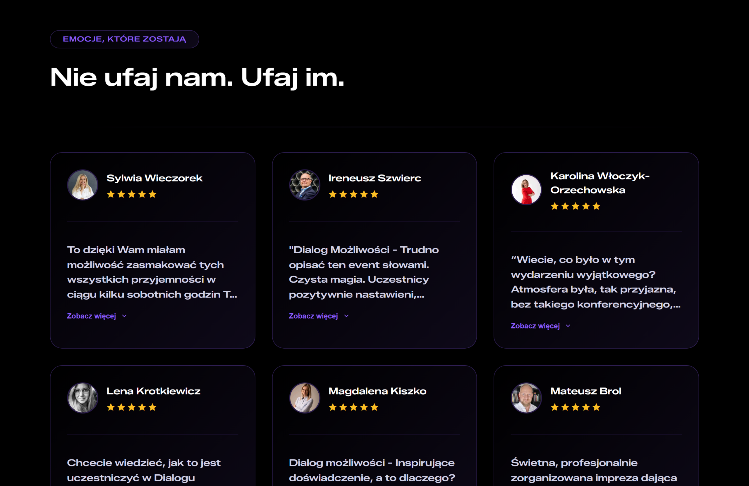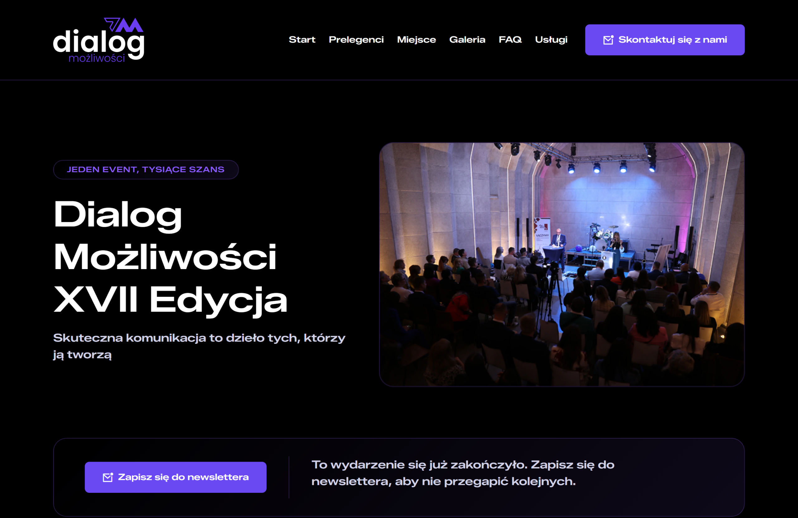 Redesign i wdrożenie nowej strony dla „Dialog Możliwości” to coś więcej niż zmiana wizualna. To inwestycja w fundamenty biznesu, gdzie technologia zdejmuje z człowieka ciężar powtarzalnych zadań. Marka zyskała nie tylko elegancką wizytówkę, ale przede wszystkim przewidywalne i stabilne narzędzie, które pozwala jej z optymizmem planować coraz większe wydarzenia, podczas gdy system dba o płynność sprzedaży i komfort pracy zespołu.